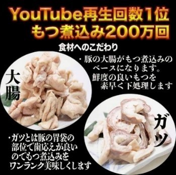 当店自慢のもつ煮込みは、色々な部位が入っており様々な食感が楽しめる商品になっております。