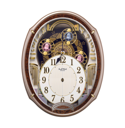 ダイナミックな動きの、新パフォーマンスからくり時計。 リズム 電波アミュージング時計 スモールワールドアルディ 木目仕上 【11100-1736】