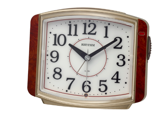 暗さを感知すると文字板が自動で点灯!夜でも見やすい目覚まし時計です。 リズム 目覚マシ時計 ピュアライトR644 木目仕上 【11100-1752】