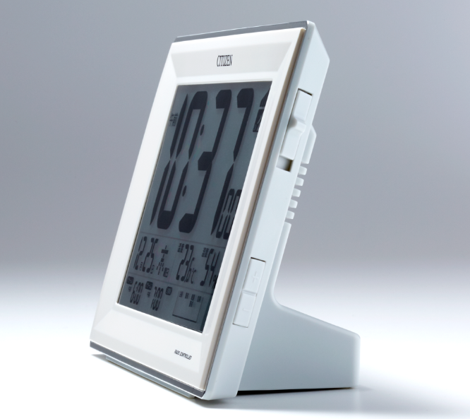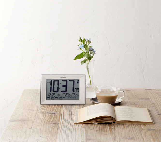 大画面液晶で見やすい電波時計。お部屋の状態がわかる環境目安表示付き。 シチズン デジタル目覚マシ時計 パルデジットワイドDL ホワイト 【11100-1758】