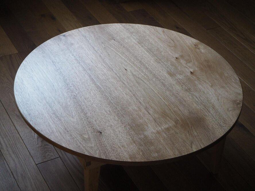 国産のクルミ材を使った、木目の美しいちゃぶ台です。天板の大きさは直径76cm。