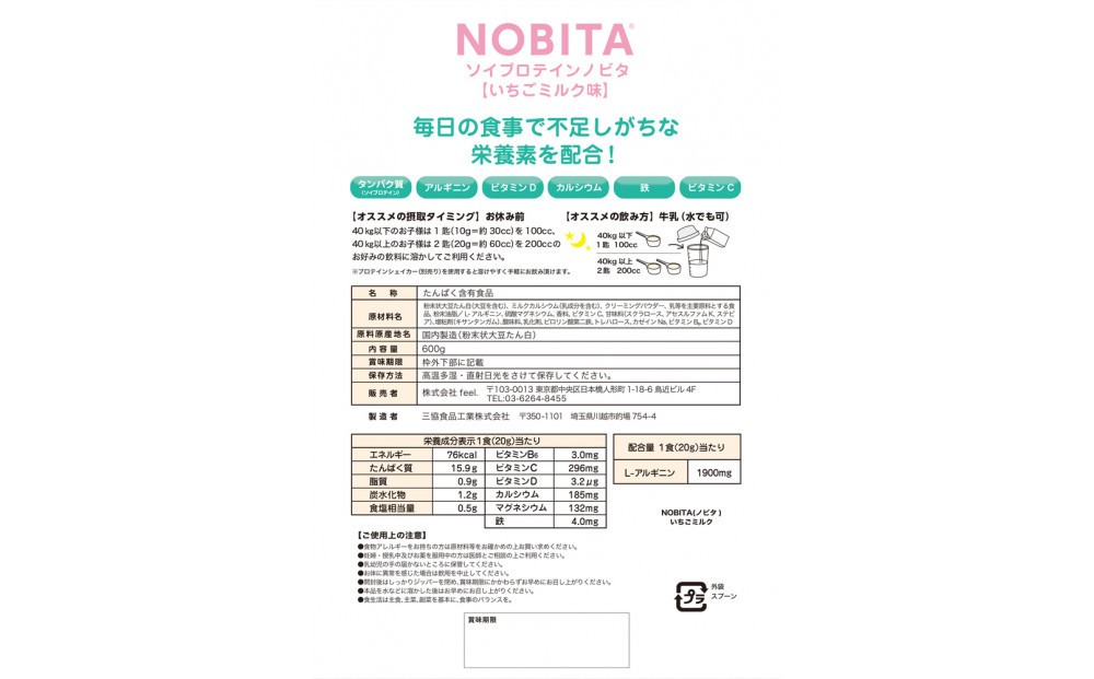NOBITA(ノビタ)ソイプロテイン / 栄養素 飲みやすい 手軽 埼玉…