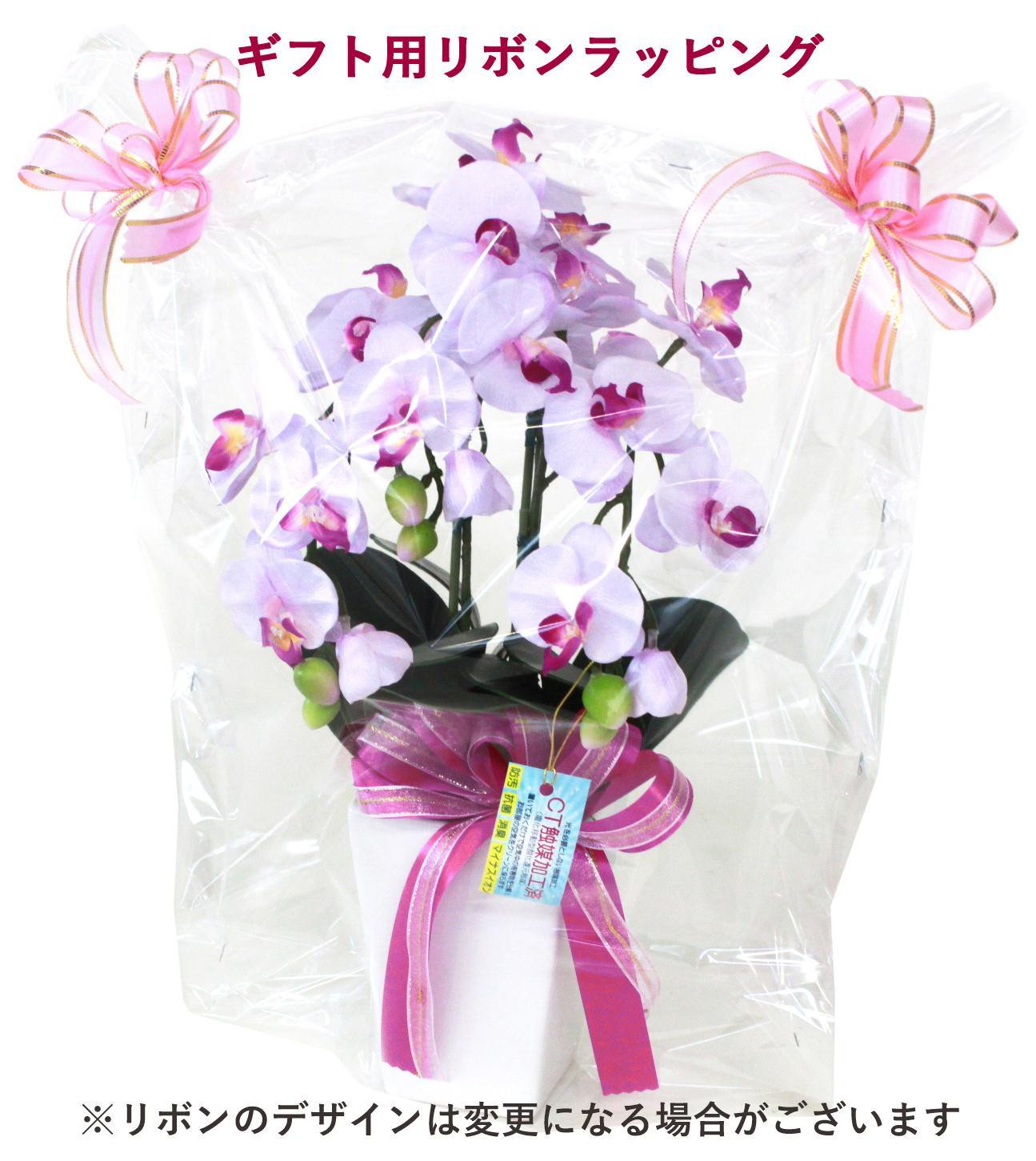 華やかな高級胡蝶蘭(コチョウラン)三本立ちの鉢植えのミニサイズを、送料無料でラッピングをしてお届けします!