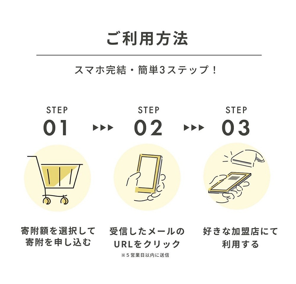(2)入金を確認してから5営業日ほどで登録いただいたメールアドレスへ”小江戸かわごえe旅ギフト”のURLが記載されたメールが届きます。(発行までに5営業日ほどかかりますので、ご注意ください。)