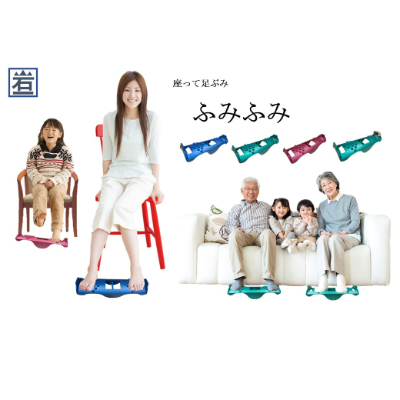 座って足踏み運動を行う足裏マッサージつき運動器具。椅子に座った状態で青竹ふみのように足を乗せ、左右交互に踏み込み運動を繰り返します。
