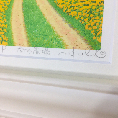 作家直筆で、左下にエディションナンバー、中央にタイトル、右下にサインが入ります。