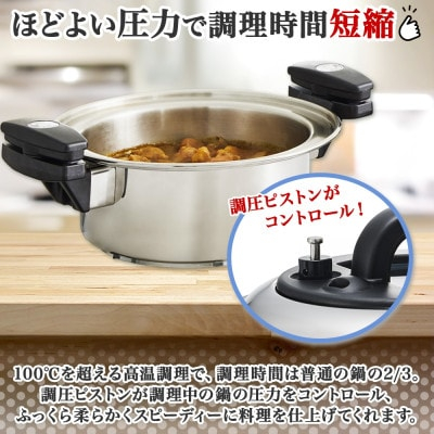 調圧ピストンが調理中の鍋の圧力をコントロールし、時間のかかる煮込み料理も、ふっくら柔らかく、スピーディーに仕上げてくれます。