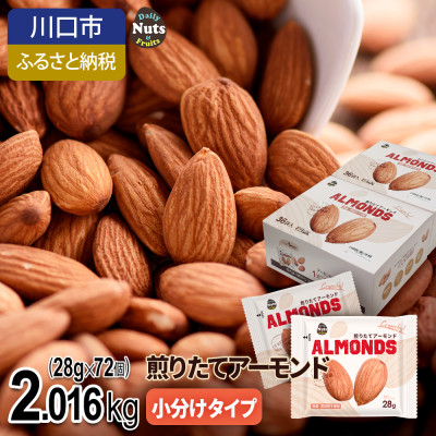 | 容量 | ■お礼品の内容について ・小分けアーモンド[2.016kg(28g×72袋)] 製造地:日本 ■原材料・成分 アーモンド(アメリカ産) 栄養成分表示:(1袋(28g)当たり) エネルギー170kcal/たんぱく質5.7g/脂質15.1g/炭水化物5.8g/食塩相当量0g ※推定値 |