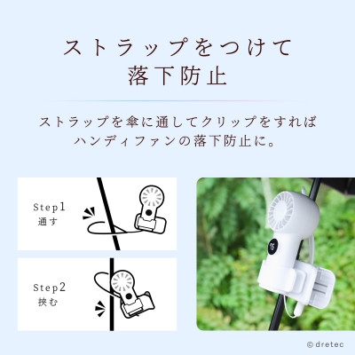 日傘などに付けられるクリップが付属しているため、ハンズフリーでハンディファンをお使いいただけます。