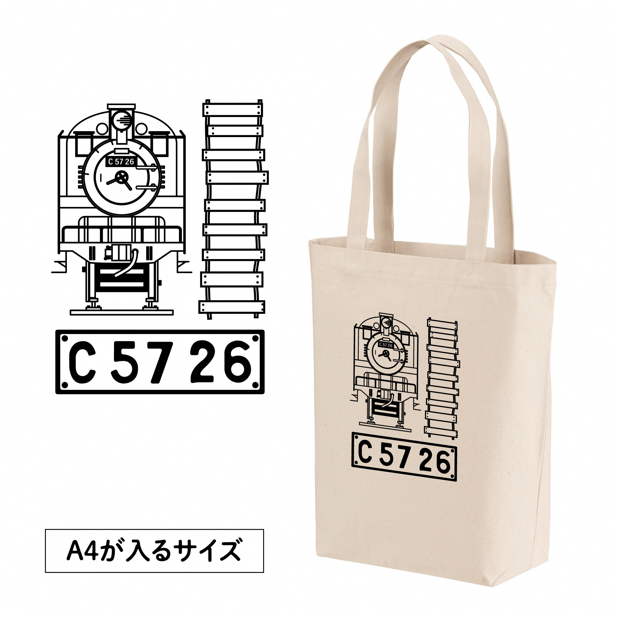 埼玉県行田市の本丸児童公園にある「蒸気機関車C57 26号機」のイラストグッズです。