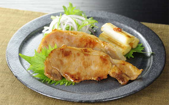 厳選した国産豚肉を、米味噌と麦味噌の合わせみそに自家製味付けを施し、漬け込みました。肉をガーゼにくるみ味噌に漬けることで、焼く時に焦げ付きづらくなるよう工夫してあります。