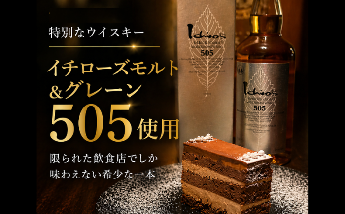 秩父市にある『Bar Te・Airigh(チェアリー)』専属パティシエが作る大人のプレミアムなチョコレートケーキです。 しっとり焼き上げたショコラ生地とクーベルチュールチョコレートを使用したビターなガナッシュクリームに、たっぷりと秩父のウイスキー「イチローズモルト&グレーン505(通称:シルバーラベル)」を使用しました。 ウイスキーの豊潤な香りとカカオの香ばしさを感じられる濃厚な味わいの一品です。お酒と一緒に、また食後のデザートにお楽しみください。 本返礼品は、原材料を合わせる・焼成・成型・冷凍までの全ての工程を秩父市内にて行っております。