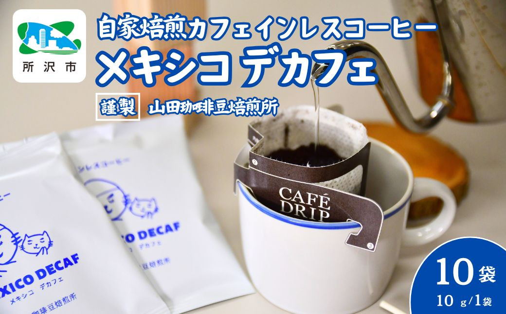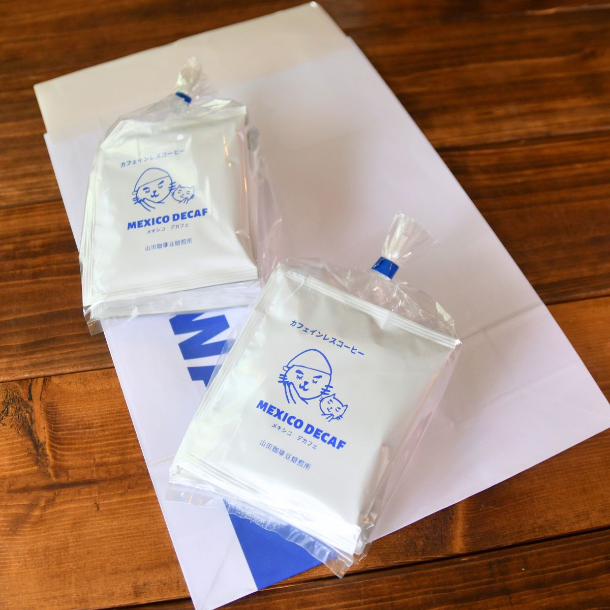 山田珈琲豆焙煎所のデカフェ(メキシコカフェインレス)ドリップバッグコーヒー10袋入りです。
