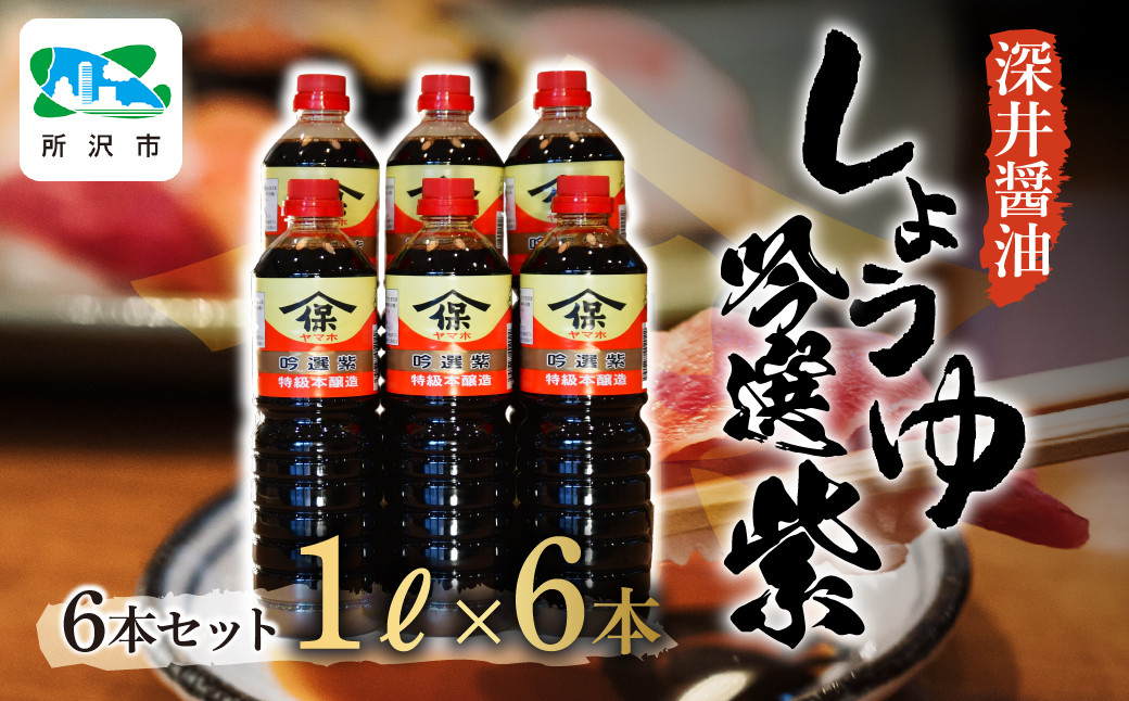 出汁や料理素材と馴染む名わき役の醤油です。 吟選紫しょうゆ 1L×6本 深井醤油 | 醤油 しょうゆ しょう油 かけしょう油 つけしょう油 大豆 調味料 味付け 料理 碗物 煮物 汁物 おいしい おすすめ 贈答品 深井醤油 埼玉県 所沢市