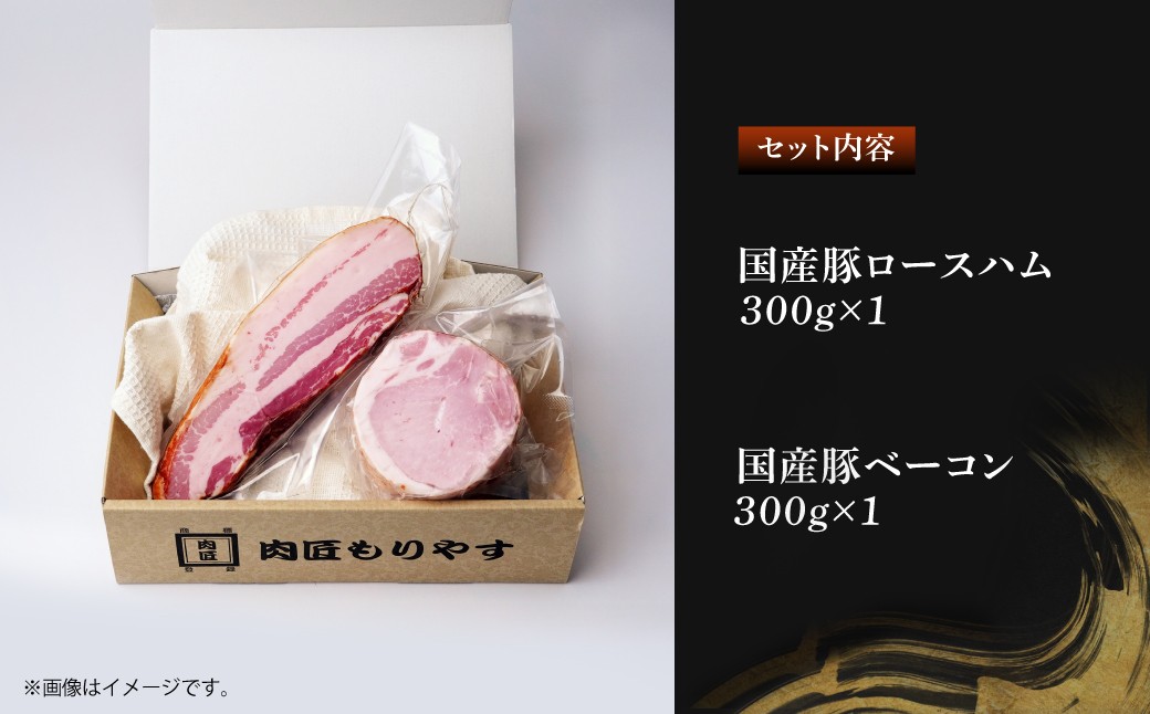 国産豚使用。至高の味わい!熟練職人の技による”肉匠もりやすのハム、ベーコン” 国産豚ロースハム 国産豚ベーコン 詰め合わせ 各300g | ハム ロースハム ベーコン 詰め合わせ 詰合せ セット 豚肉 肉 国産 お中元 お歳暮 ギフト 贈答 グルメ お取り寄せ 冷蔵 肉匠もりやす 埼玉県 所沢市