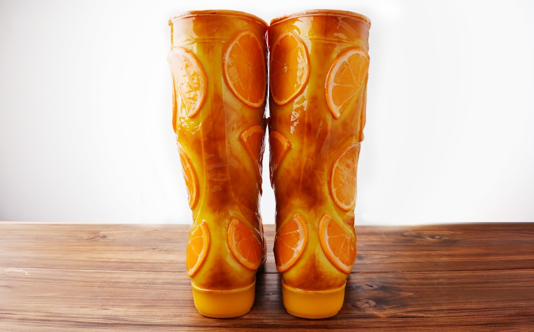 スライスしたオレンジをたくさんトッピングした、オレンジケーキのブーツです。