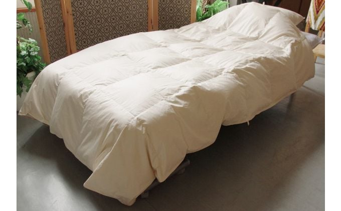 | 容量 | サイズ:シングルサイズ(150cm×210cm) 5×6マスのたたきキルト カラー:キナリ(無地) 素材:綿100% 60サテン生地、ダウンプルーフ加工 詰め物:Jumou再生ダウン(リサイクルダウン)、詰め物重量:0.3kg 日本製 |