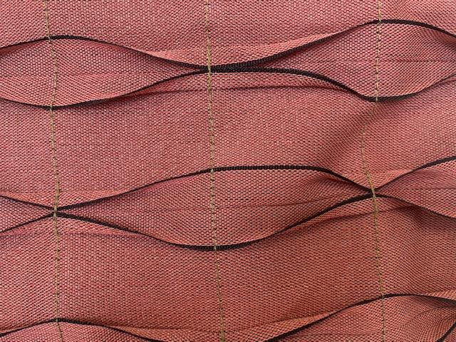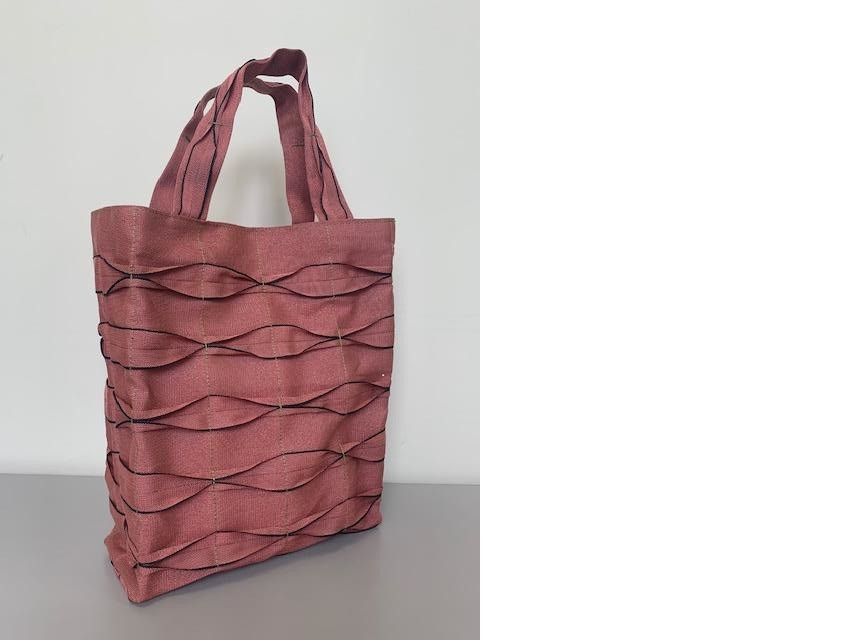 畳の「へり」がオシャレなバッグに大変身。1枚1枚はぎ合せ更に模様をつけて丁寧に縫い上げました。