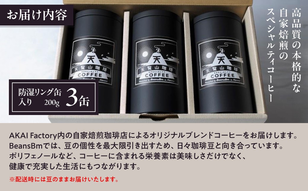 【豆のまま】天覧山ハイキングコーヒー ≪缶入りコーヒー豆3缶≫ HNNI004