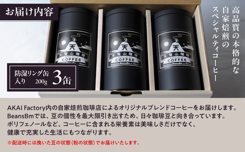 【挽いた豆】天覧山ハイキングコーヒー ≪缶入りコーヒー豆3缶≫ HNNI005
