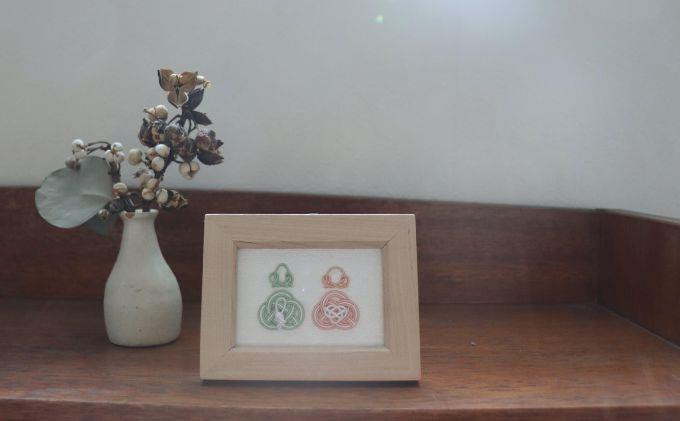 水引のおひなさまを手のりサイズの小さな木のフレームにとじこめました。