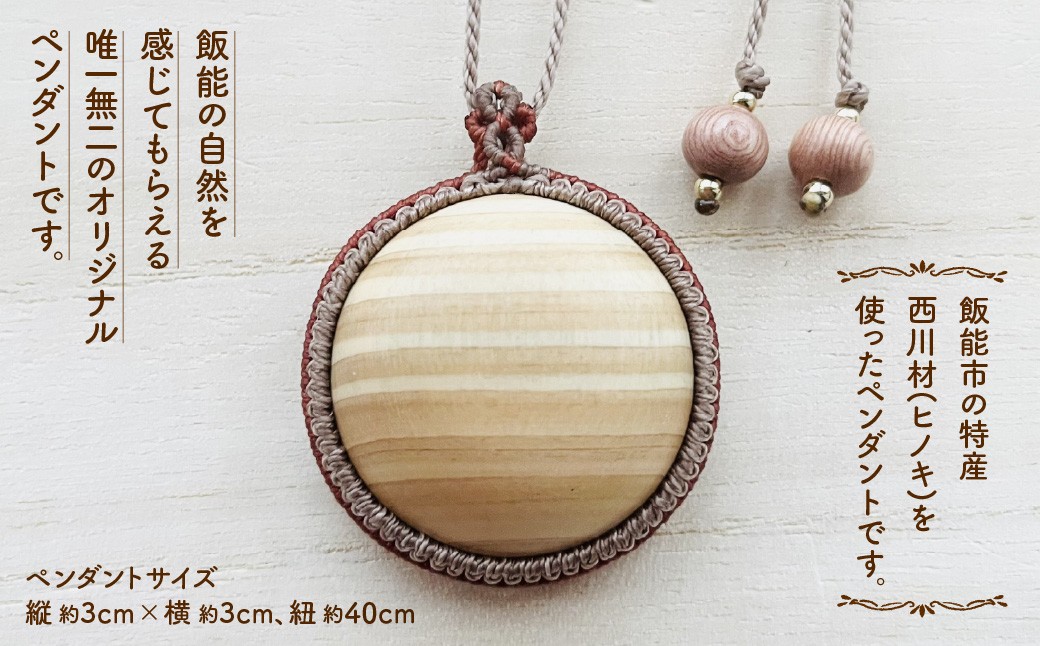 飯能市の特産・西川材(ヒノキ)を使ったペンダントです。