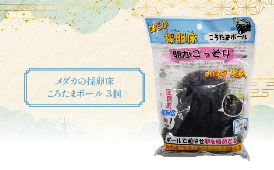 | 容量 | メダカ4匹(オス、メス)えさ20g、ころたまボール(産卵床)3個、サイズ2~4cm(生後5か月~1年程度) ■返礼品の地場産品基準■ 市内で生産 |