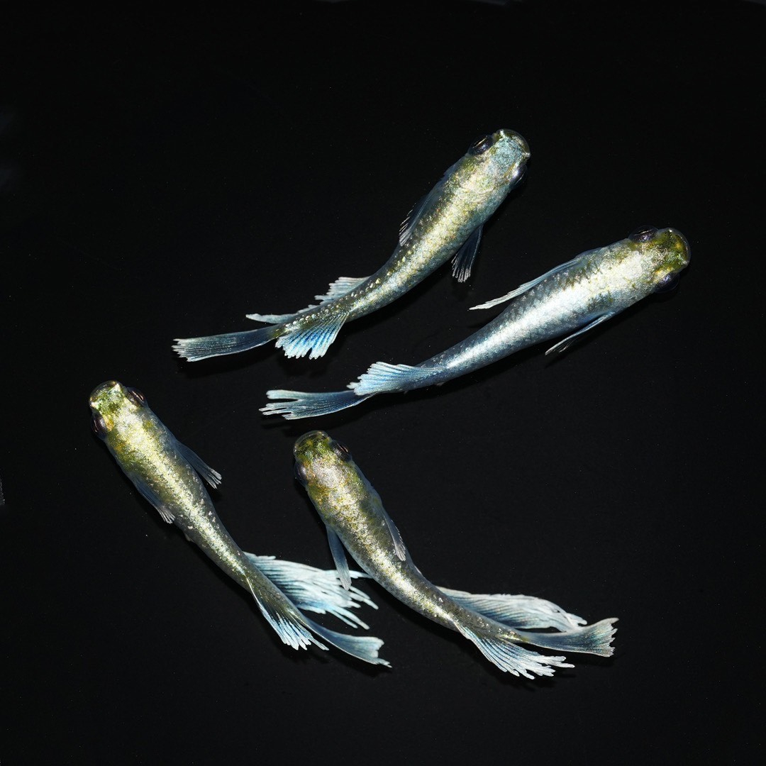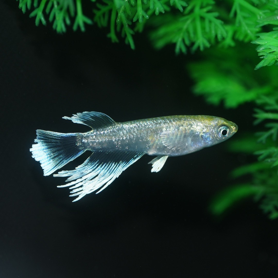 メタリックな体色で背ビレと尻ビレが幅広いワイドフィンにロングフィン形質により、ヒレが大きく伸長した大変奇麗なメダカです。