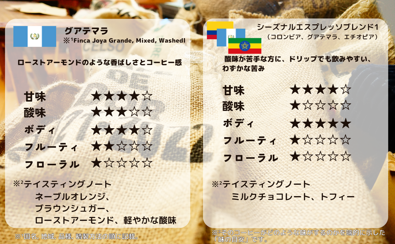 お届けする主なコーヒーの紹介