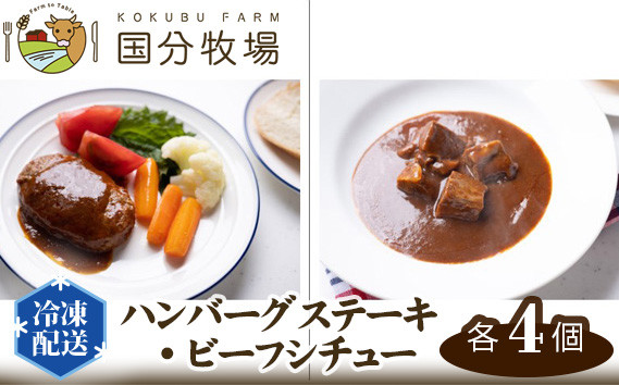 簡単・便利・美味しい こだわりハンバーグを是非お召し上がりください。 <国産牛>ハンバーグステーキ・ビーフシチュー 各4個セット | 牛肉 国産 国産牛 惣菜 簡単調理 レトルト 冷凍 グルメ 冷凍食品 レトルト おかず 美味しい 肉料理 手軽 調理済み ごはんのお供 ファミリーメニュー 栄養満点 ダイニング 夕食 国分牧場 埼玉県 東松山市