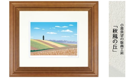 日本の現代版画を代表する小暮真望の世界。精緻な版画でお楽しみください。 版画 小暮真望作品 「秋風の丘」 | 版画 額付 小暮真望 アート シルクスクリーン 美術品 絵画 限定 自然 風景 日本版画会 セリグラフ 埼玉県 東松山市