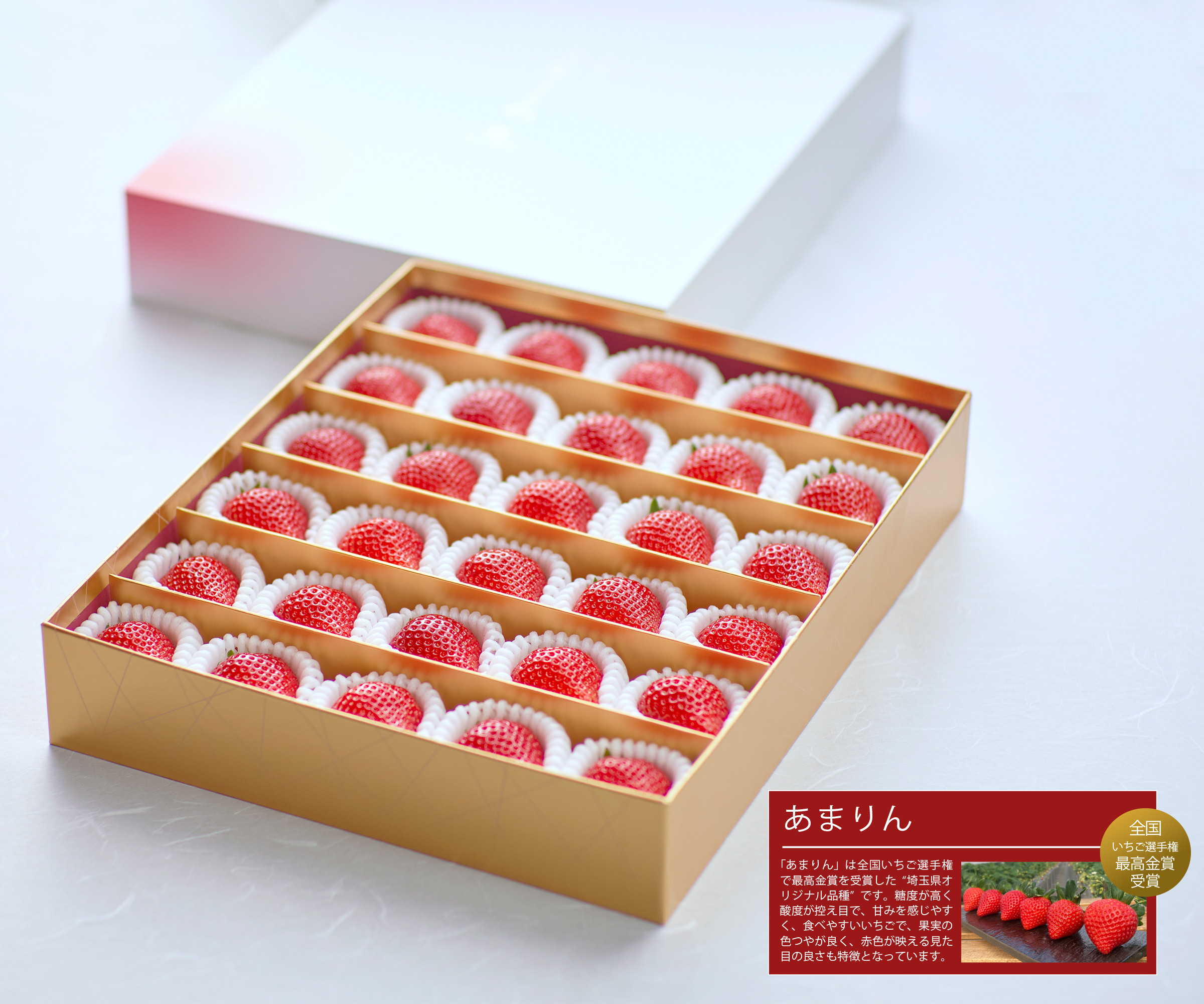 【先行予約】あまりん 特別厳選 まなこころ・彩(210g【6粒】)…37,000 円 味、美しさ、粒揃いにこだわったブランドイチゴ「まなこころ」の最上位クラス - 冷蔵便