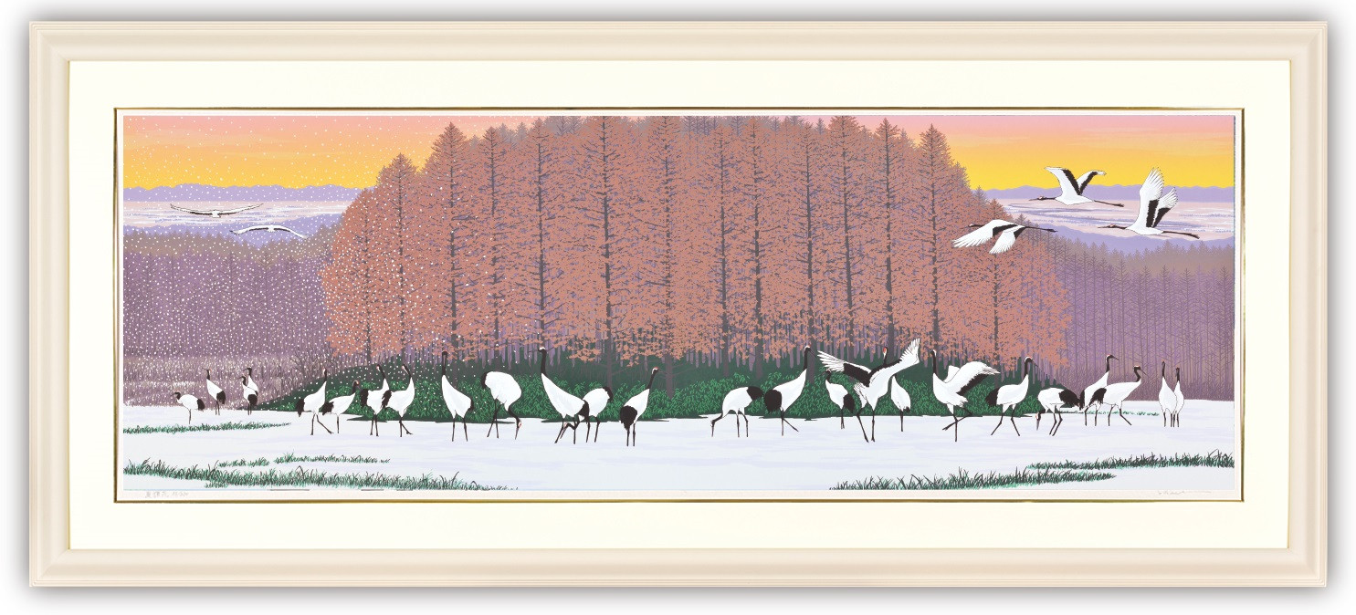 埼玉県 東松山市 版画 額付 小川手漉和紙 日本版画会 小暮真望 芸術 美術 風景 自然 送料無料 バージョン 美しい ギャラリー アーティスト アート ART 芸術 デザイン インテリア 絵画 限定版 芸術品 オリジナル 北海道 釧路市 鶴居村 鶴 冬