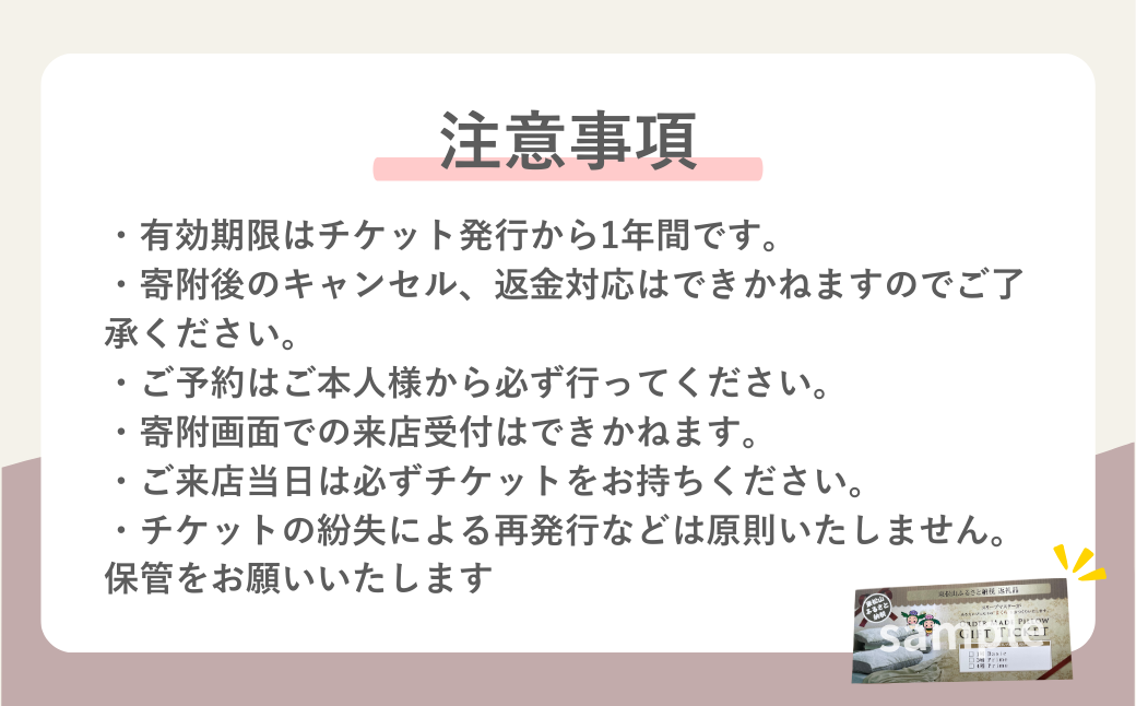 | 消費期限 | 【チケット使用期限】 発行日から1年間 |