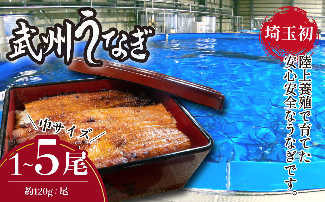 陸上養殖した安心安全な国産うなぎ <選べる尾数>武州うなぎ 国産うなぎ蒲焼 中サイズ 1〜5尾 冷凍真空パック(約120g) | うなぎ 国産うなぎ 蒲焼き 特選 ギフト 父の日 母の日 誕生日 お祝い 土用の丑の日 御歳暮 お歳暮 中サイズ 冷凍 真空パック レンジ対応 美味しい グルメ 家庭用 選べる尾数 埼玉県 東松山市