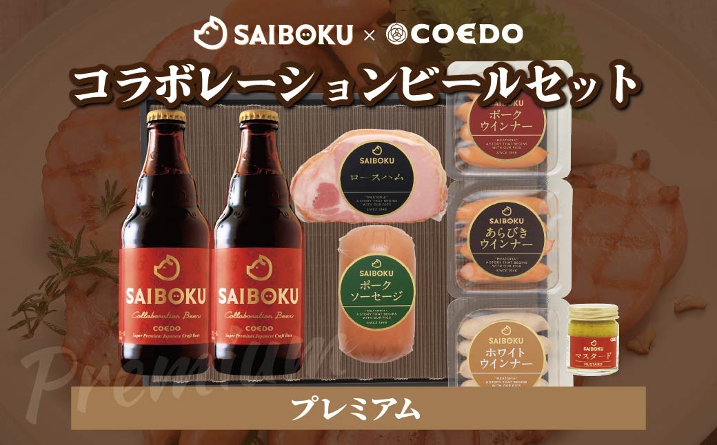 埼玉名産「サイボク」と「コエドビール」のコラボ返礼品が登場! SAIBOKU×COEDO コラボレーションビールセット (プレミアム) | サイボク コエドビール ビール クラフトビール 地ビール ギフト 内祝い 結婚祝い お返し 贈答品 お取り寄せグルメ ウインナー 豚肉 お酒 おつまみ 詰め合わせ 埼玉県 東松山市