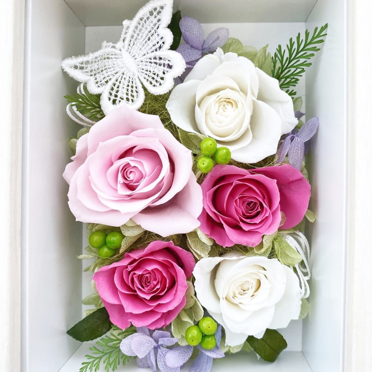 高級花(プリザーブドフラワーではあまり使用される事が少ないお花)など、取り扱いが困難な花材も多数使用し、厳しいクオリティーチェックに合格した製品のみ出荷しております。