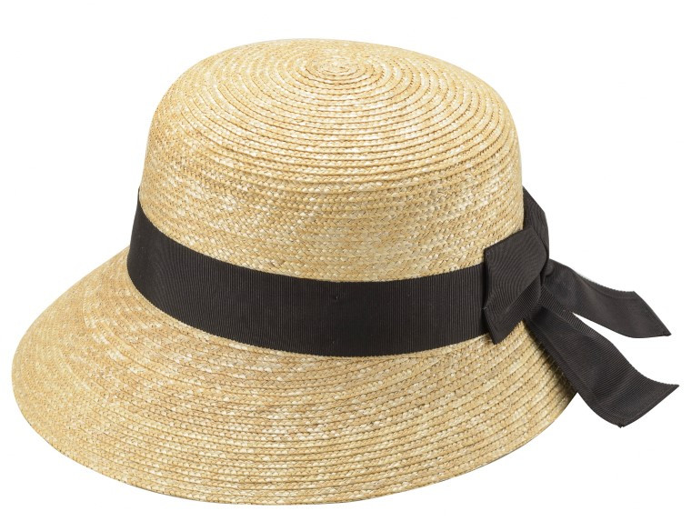 長めの前ツバがしっかりと顔を覆い、春夏の強い日差しから肌を守ってくれる通称「女優帽」タイプ。
