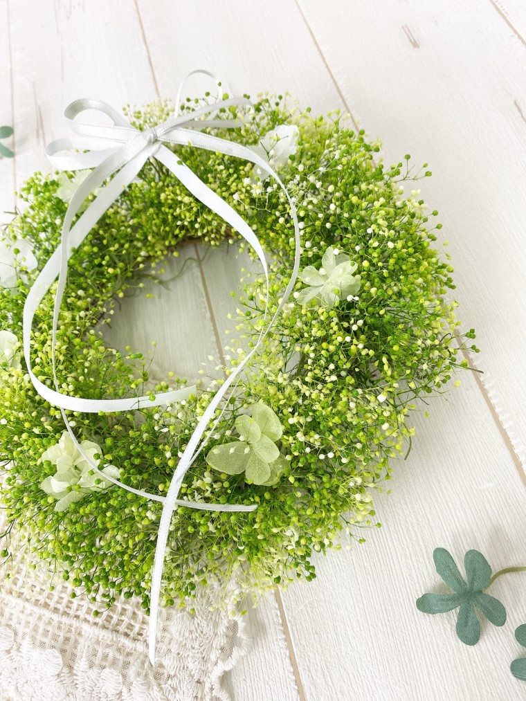 カスミ草をふんだんに使用したリースです。インテリア、ギフト、母の日にもおすすめです。
