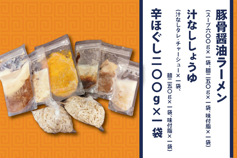 | 容量 | 2人前 ■ラーメンセット 豚骨しょうゆ (スープ600g×1袋、麺250g×1袋、味付脂×1袋) ■汁なししょうゆ (汁なしタレ・チャーシュー×1袋、麺250g×1袋、味付脂×1袋) ■辛ほぐし200g×1袋 |