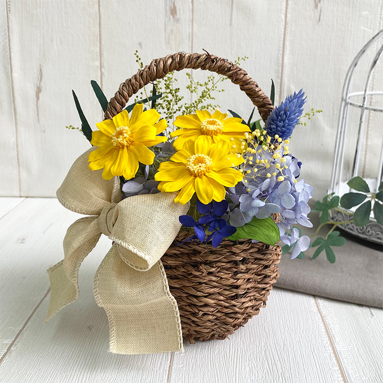 ・花材はすべて自然素材のため、アジサイ・小枝・葉等の多少の色落ちや欠けがある事があります。