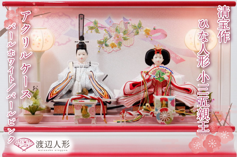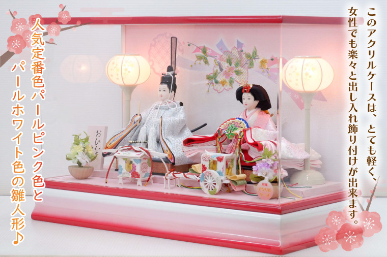 お雛様 ひな祭り 節句 祝い BL015-1 清宝作雛人形ケース飾り 小三五親王 アクリルケース パールホワイト/パールピンク(222A-20)