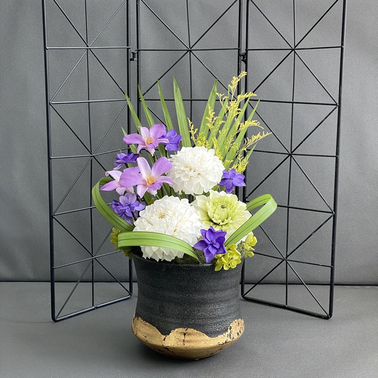 大輪のダリアとデンファレを贅沢に使用した、豪華な和モダンアレンジ プリザーブドフラワー 誉(ほまれ) 春日部市 シュガーパイン(AJ263)