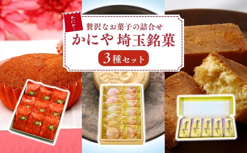 かにやのお菓子を堪能できる、埼玉銘菓3種セットです。