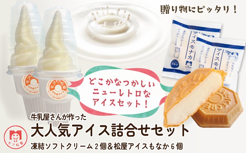 モア松屋の人気アイス2種をセットにしました! アイス もなか 6個 ソフトクリーム 2個 セット最中 個包装 手作り 卵 保存料 不使用 スイーツ デザート おやつ 小分け アイスクリーム ギフト プレゼント 牛乳屋さんが作った アイスもなか モア松屋 埼玉県 羽生市