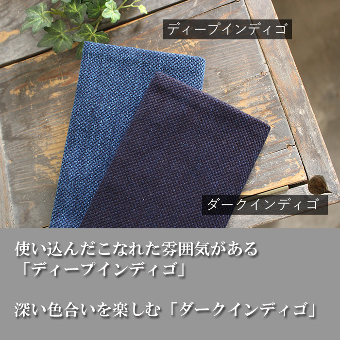 藍の色合いと素材を楽しむこだわりのブックカバー。
