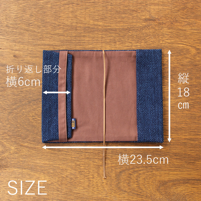 | 容量 | ブックカバー1点 サイズ 縦:18cm 横:23.5cm 折り返し部分横:6㎝ 綿100% しおりひも付き <カラー> ダークインディゴ、ディープインディゴ、ホワイトミックスダーク、ホワイトミックスディープの4種 |