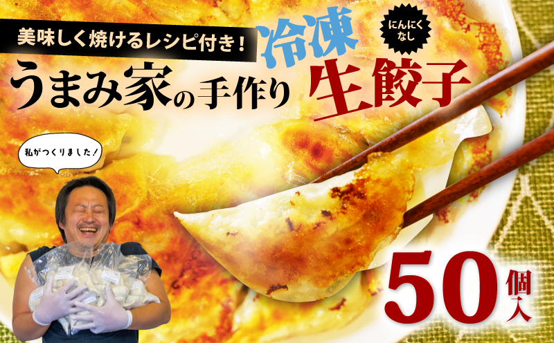ニンニクなしなのでお子様や女性にもおすすめ!!50個セット 餃子 にんにくなし 生餃子 50個 冷凍 ぎょうざ ギョーザ gyouza gyo-za 手包み 手作り チャック付きパック 中華 肉 豚肉 簡単 お手軽 絶品 おかず 晩ごはん 焼くだけ 簡単調理 弁当 惣菜 揚げ餃子 お取り寄せ にんにく餃子 埼玉県 羽生市 うまみ家