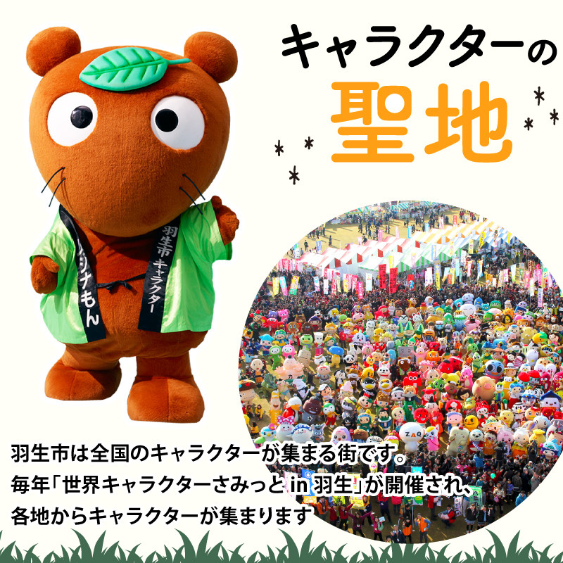 毎年、羽生市では世界のキャラクター達が集まる『世界キャラクターさみっとin羽生』が開催されています。日本最大級のキャラクターイベントで、なんと海外から参加するキャラクターも!様々な催しが用意され、羽生市全体が盛り上がる素晴らしいイベントです。ぜひ、羽生市にお越しください!