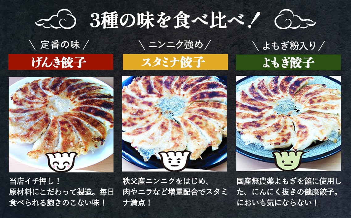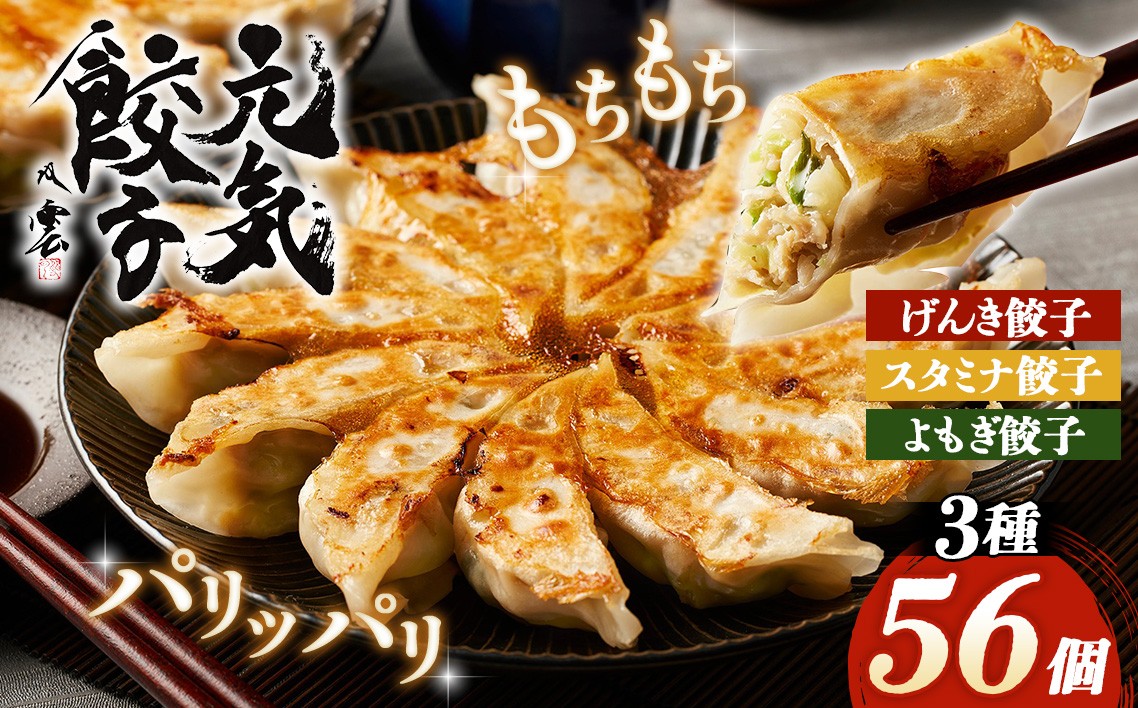 3種の本格餃子 餃子専門店「元気餃子」冷凍セット 元気餃子のこだわり餃子3種セット(56個入り/冷凍生餃子) 食べ比べ ギョーザ専門店 中華総菜 点心 もちもち パリパリ / 餃子 冷凍 冷凍餃子 3種セット 元気餃子 スタミナ餃子 よもぎ餃子 本格 パリッと おうちごはん お惣菜 ご家庭用 中華 皮厚 豚肉 ニラ 食べ比べ ギフト 惣菜 No.010